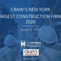 EW Howell Ranked on the 2020 Crain's New York Largest Construction Firms list!